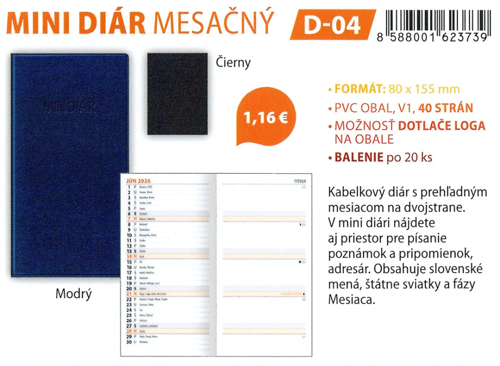 MINI DIÁR mesačný – D-04Nie je skladom1,76 €/ ks1,43 € bez DPH