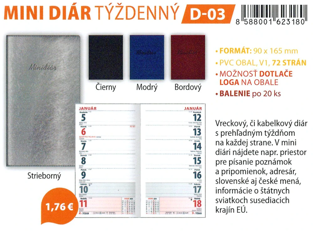 MINI DIÁR týždenný – D-03Nie je skladom1,76 €/ ks1,43 € bez DPH