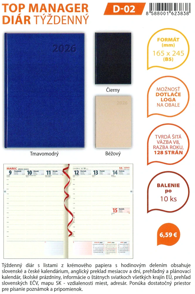 TOP MANAGER DIÁR týždenný – D-02Nie je skladom6,59 €/ ks5,36 € bez DPH